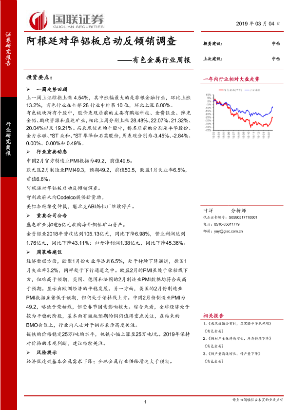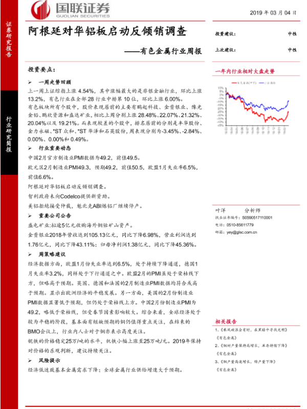 【国联证券】【20190304】20190304-国联证券-有色金属行业周报:阿根廷对华铝板启动反倾销调查-10页
