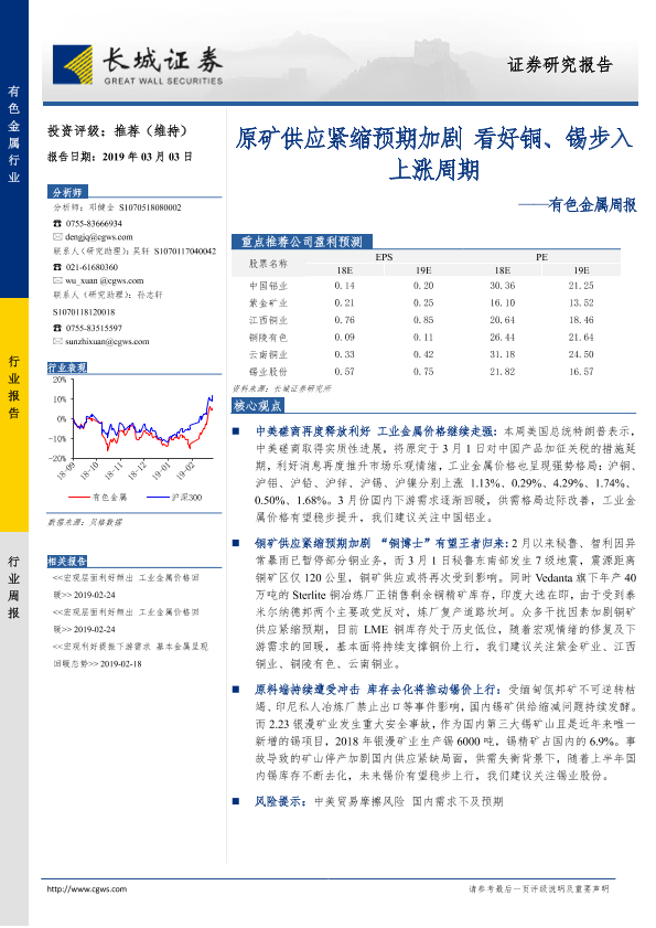 【长城证券】【20190303】20190303-长城证券-有色金属周报:原矿供应紧缩预期加剧 看好铜、锡步入上涨周期-11页