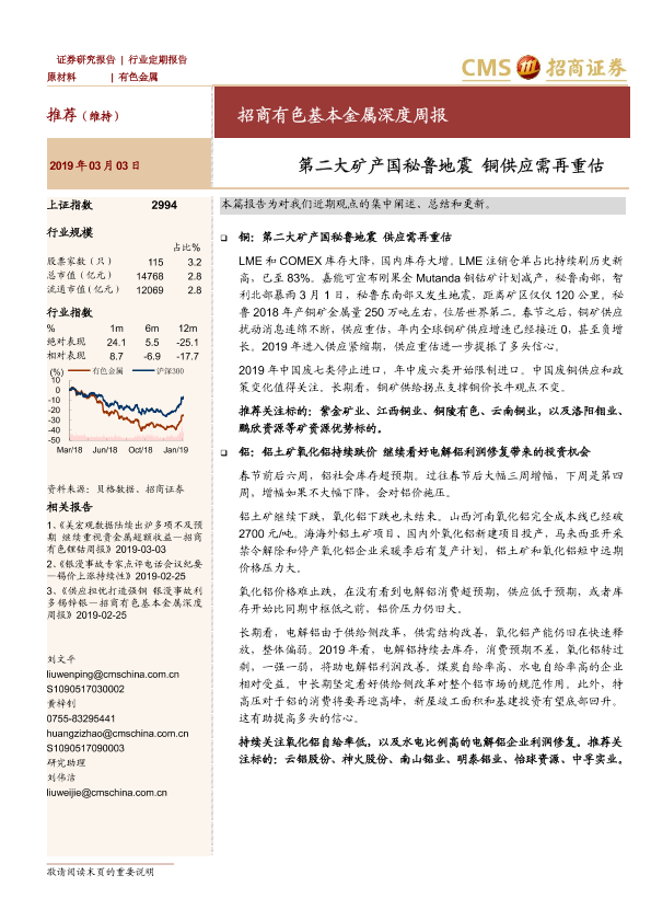 【海通证券】【20190303】招商有色基本金属深度周报:第二大矿产国秘鲁地震 铜供应需再重估-20页