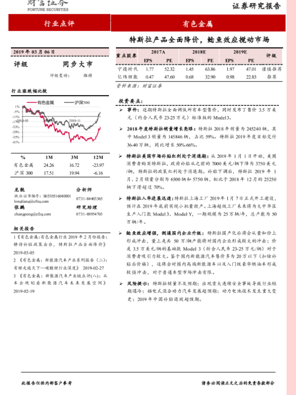 【财信证券】【20190306】财信证券-有色金属行业点评:特斯拉产品全面降价,鲶鱼效应搅动市场-5页