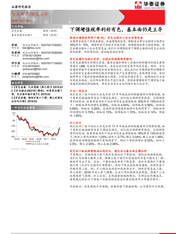 【华泰证券】【20190306】有色金属:下调增值税率利好有色,基本面仍是主导-13页