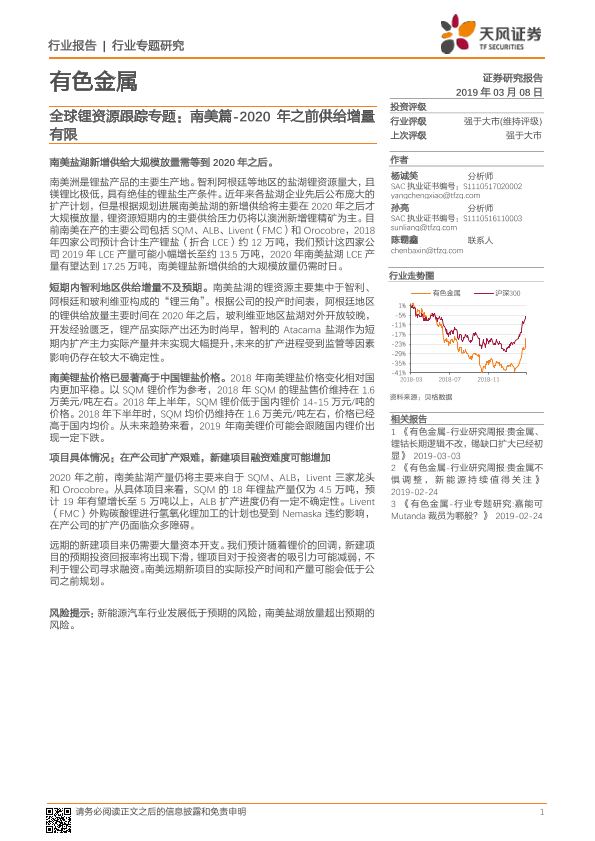 【天风证券】【20190308】全球锂资源跟踪专题:南美篇-2020年之前供给增量有限-13页