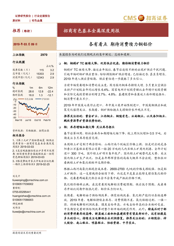 【海通证券】【20190309】招商有色基本金属深度周报:各有看点 期待消费续力铜铝价-21页