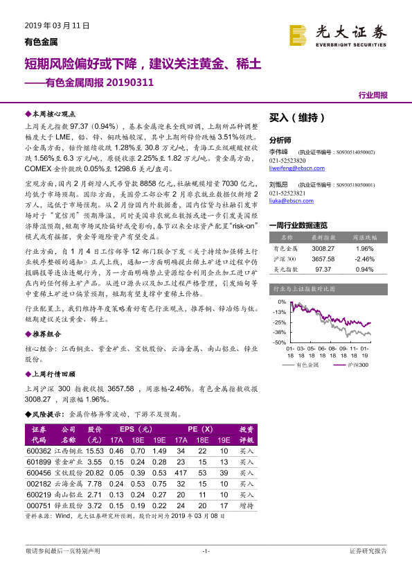 【光大证券】【20190311】20190311-光大证券-有色金属周报:短期风险偏好或下降,建议关注黄金、稀土-14页