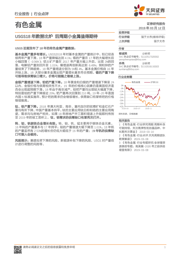 【天风证券】【20190312】有色金属行业点评:USGS18年数据出炉 后周期小金属值得期待-6页