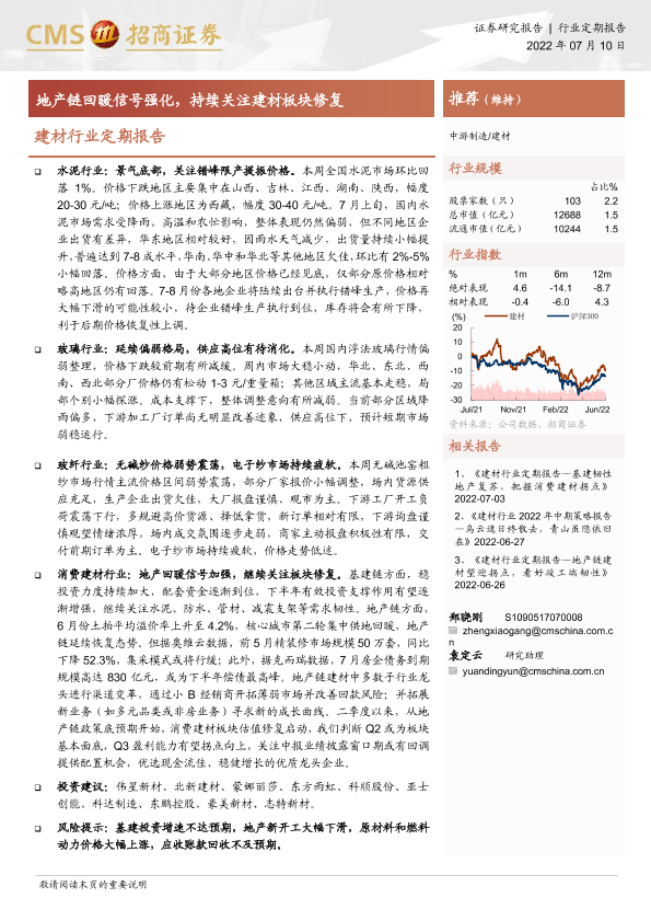 【海通证券】【20220710】建材行业定期报告:地产链回暖信号强化,持续关注建材板块修复-25页