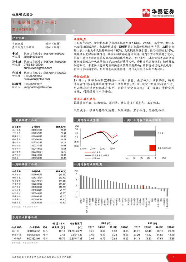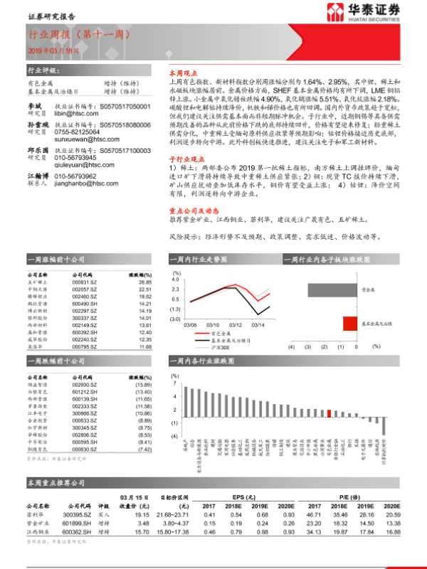 【华泰证券】【20190318】20190318-华泰证券-有色金属行业周报(第十一周)-17页