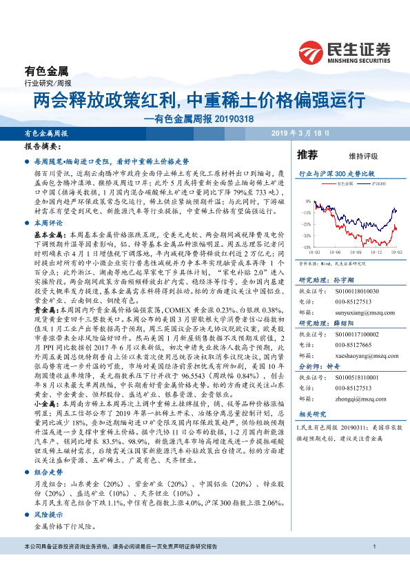 【民生证券】【20190318】两会释放政策红利,中重稀土价格偏强运行-36页