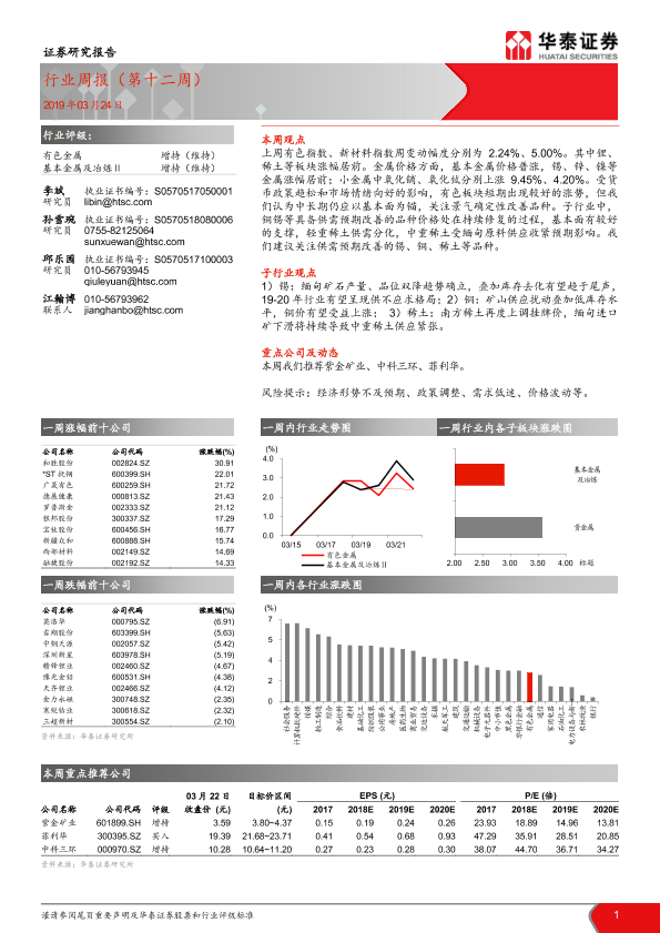 【华泰证券】【20190324】20190324-华泰证券-有色金属行业:周报(第十二周)-17页