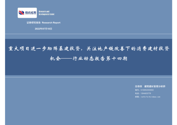 【信达证券】【20220710】建筑建材行业动态报告第十四期:重大项目进一步助阵基建投资,关注地产链改善下的消费建材投资机会-28页