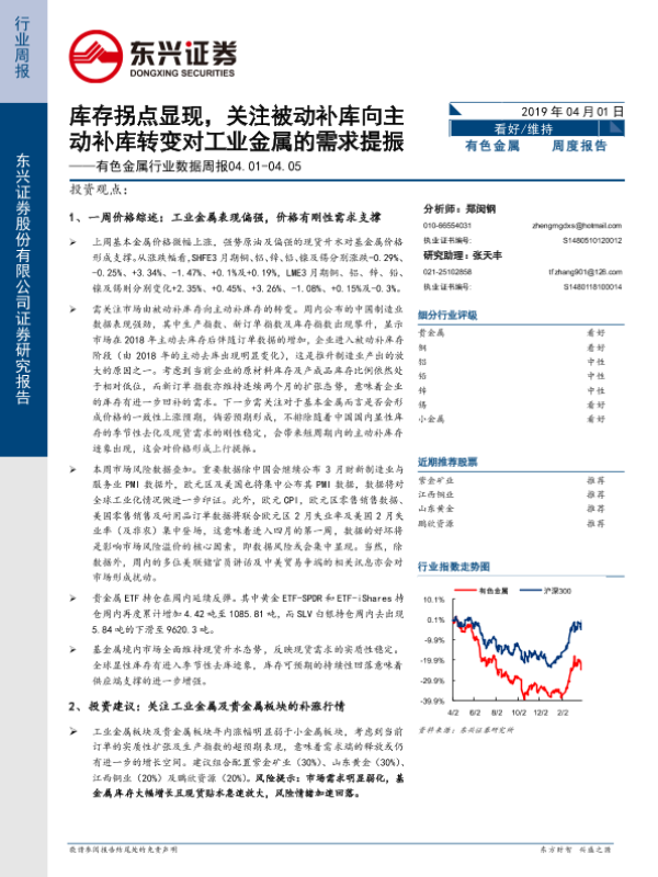 【东兴证券】【20190401】20190401-东兴证券-有色金属行业数据周报:库存拐点显现,关注被动补库向主动补库转变对工业金属的需求提振-14页