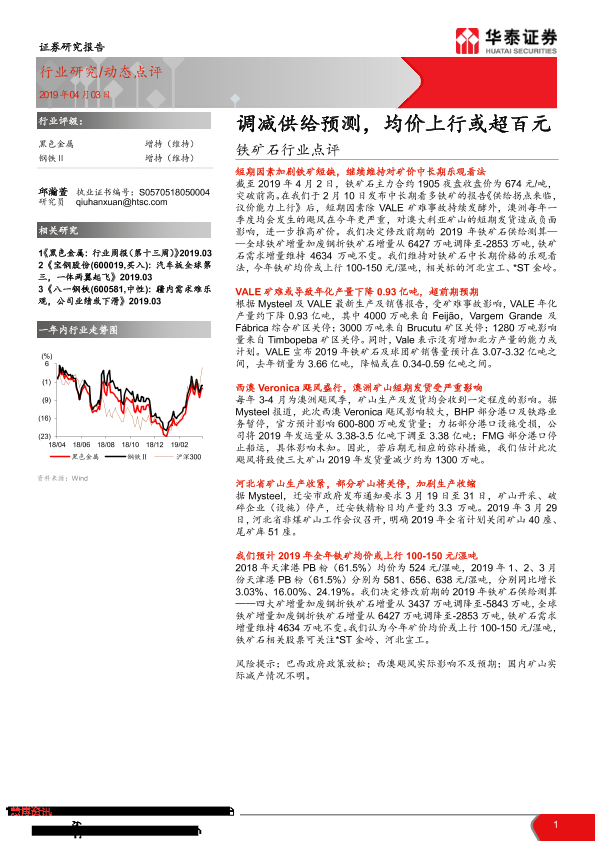 【华泰证券】【20190403】铁矿石行业点评:调减供给预测,均价上行或超百元-4页