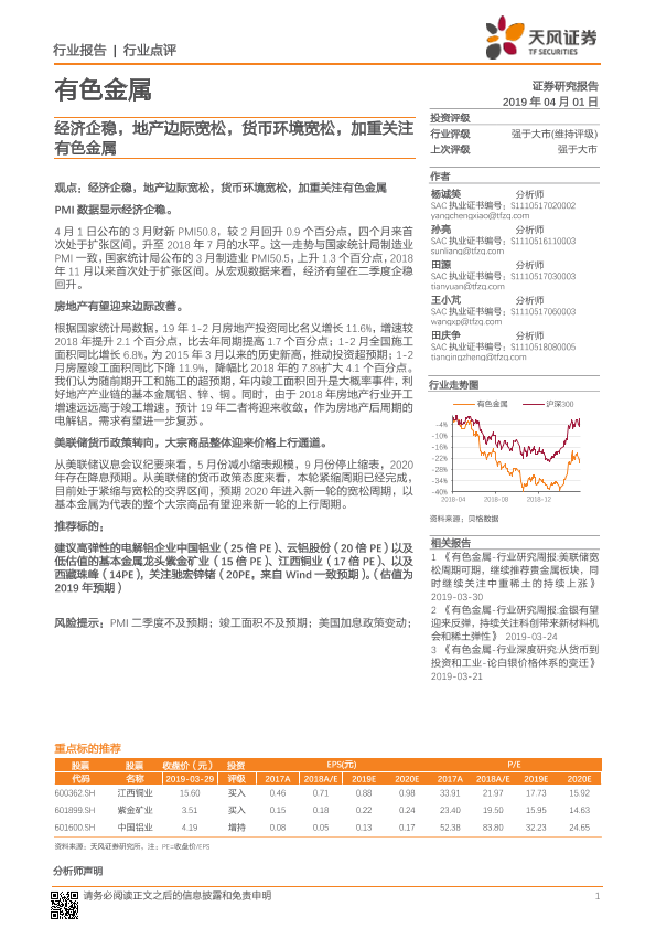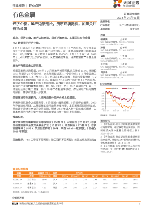 【天风证券】【20190401】20190401-天风证券-有色金属行业点评:经济企稳,地产边际宽松,货币环境宽松,加重关注有色金属-2页