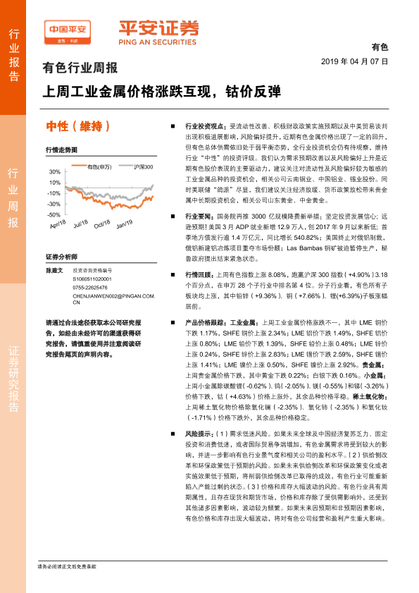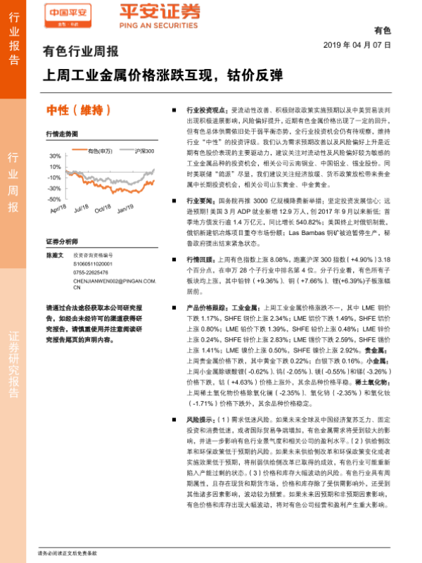 【平安证券】【20190407】20190407-平安证券-有色行业周报:上周工业金属价格涨跌互现,钴价反弹-5页