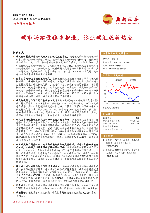 【西南证券】【20220713】建筑装饰行业碳市场专题报告:碳市场建设稳步推进,林业碳汇成新热点-39页