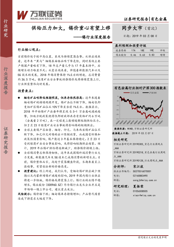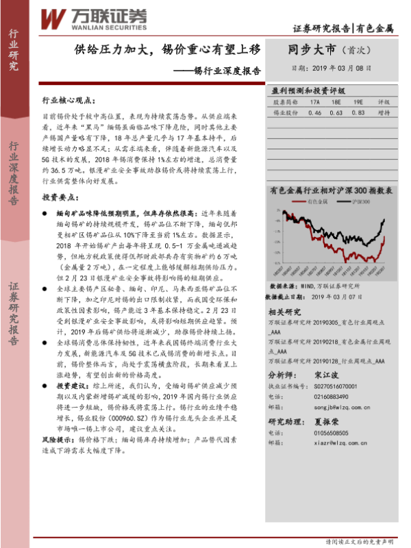 【万联证券】【20190308】20190408-万联证券-锡行业深度报告:供给圧力加大,锡价重心有望上移-23页