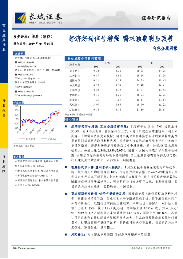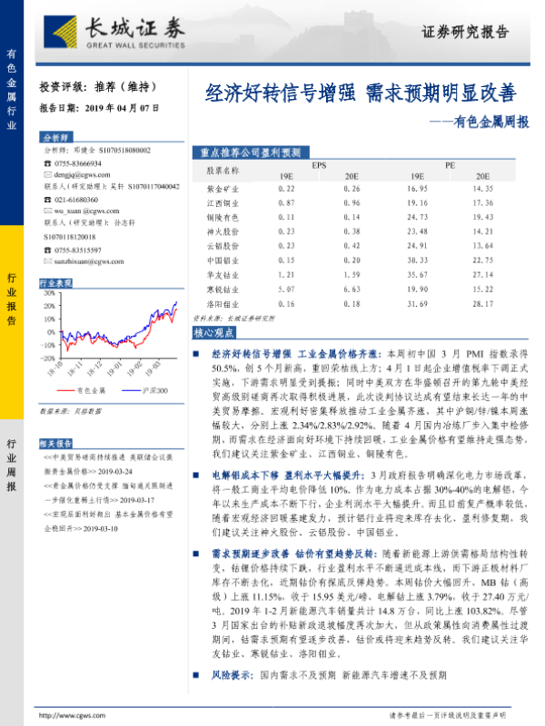 【长城证券】【20190407】20190407-长城证券-有色金属周报:经济好转信号增强 需求预期明显改善-11页