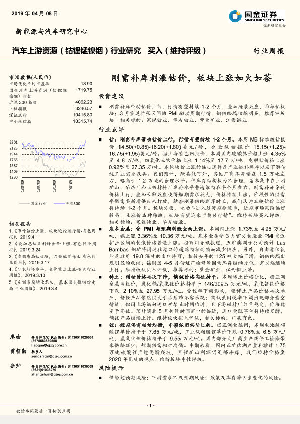 【国金证券】【20190408】20190408-国金证券-汽车上游资源(钴锂锰镍铟)行业研究周报:刚需补库刺激钴价,板块上涨如火如荼-8页