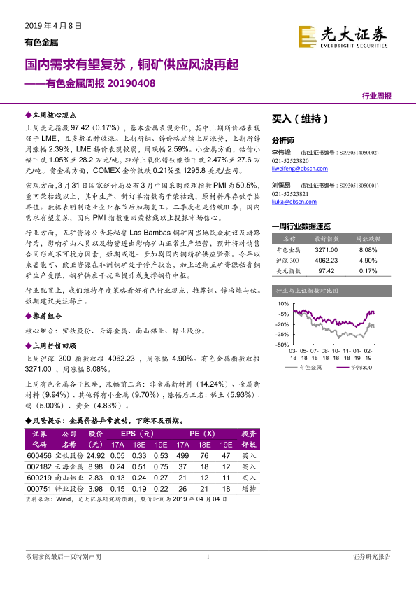 【光大证券】【20190408】20190408-光大证券-有色金属周报:国内需求有望复苏,铜矿供应风波再起-12页