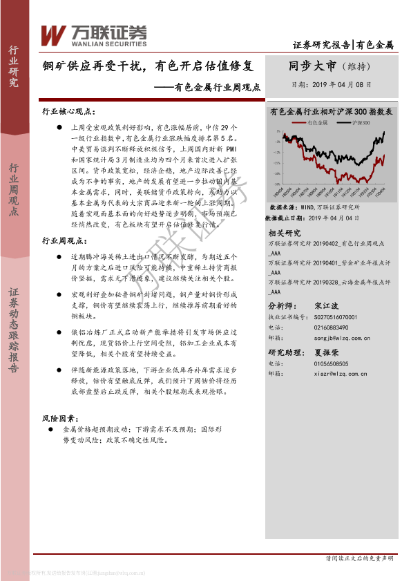 【万联证券】【20190408】20190408-万联证券-有色金属行业周观点:铜矿供应再受干扰,有色开启估值修复-14页
