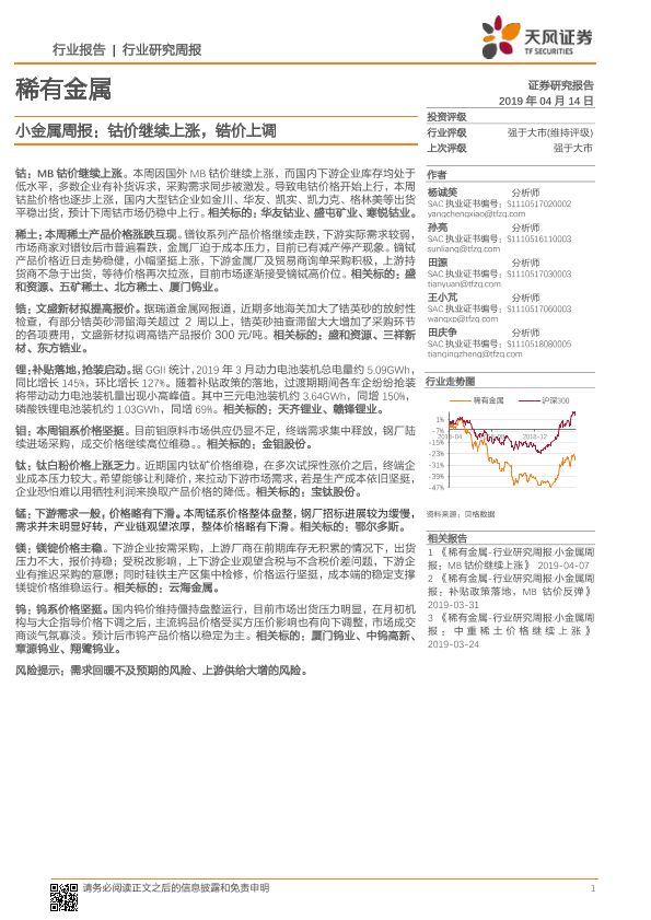 【天风证券】【20190414】20190414-天风证券-小金属周报:钴价继续上涨,锆价上调-16页