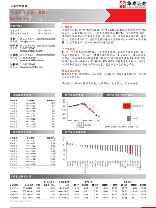 【华泰证券】【20190414】20190414-华泰证券-有色金属行业周报(第十五周)-21页