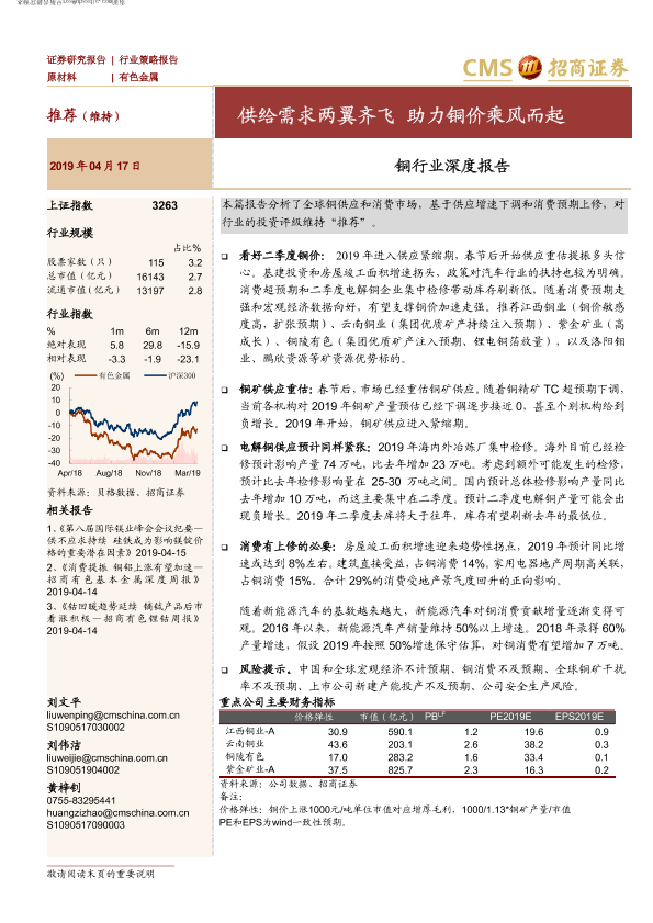 【海通证券】【20190417】20190417-招商证券-铜行业深度报告:供给需求两翼齐飞 助力铜价乘风而起-12页