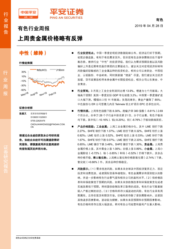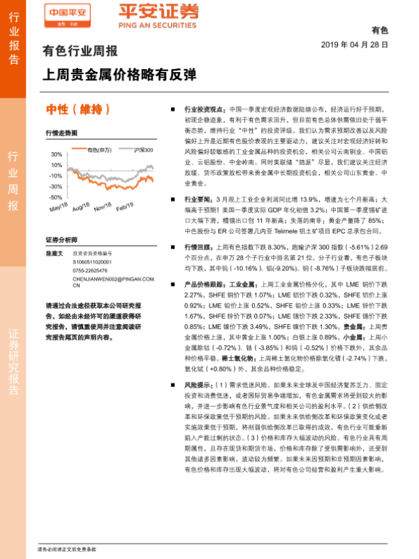 【平安证券】【20190428】20190428-平安证券-有色行业周报:上周贵金属价格略有反弹-5页