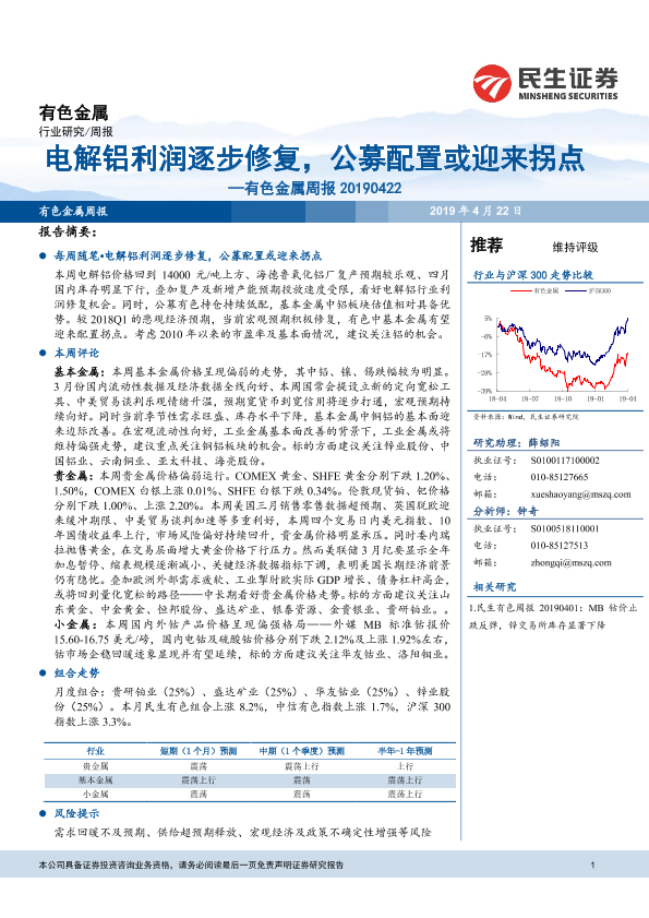 【民生证券】【20190422】20190422-民生证券-有色金属行业周报:电解铝利润逐步修复,公募配置或迎来拐点-30页