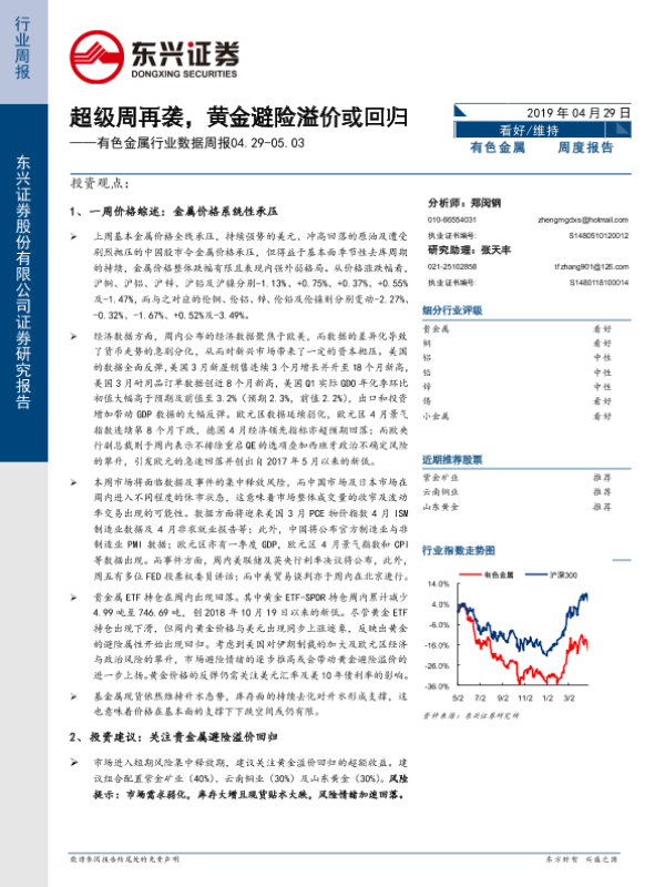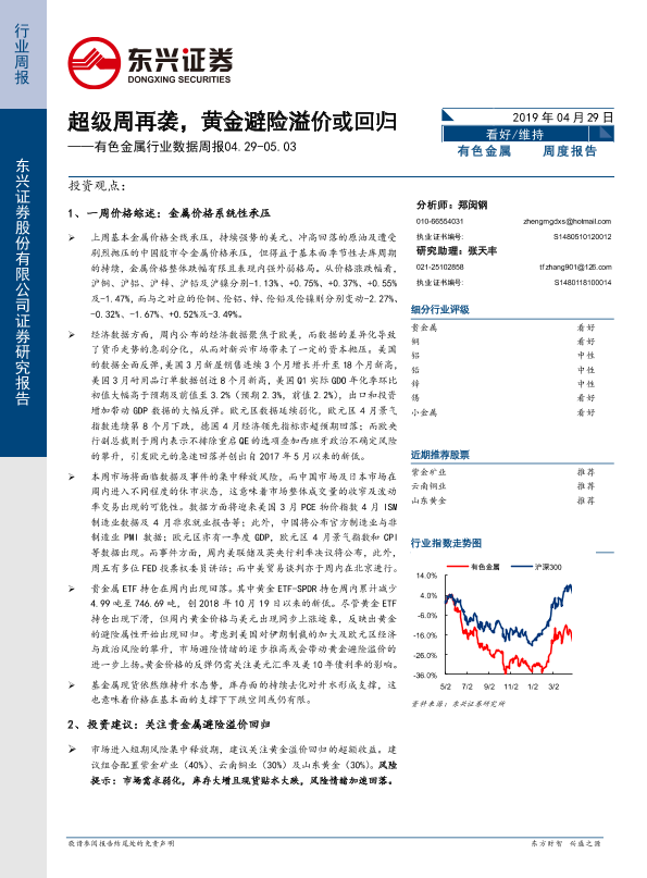 【东兴证券】【20190429】20190429-东兴证券-有色金属行业数据周报:超级周再袭,黄金避险溢价或回归-15页