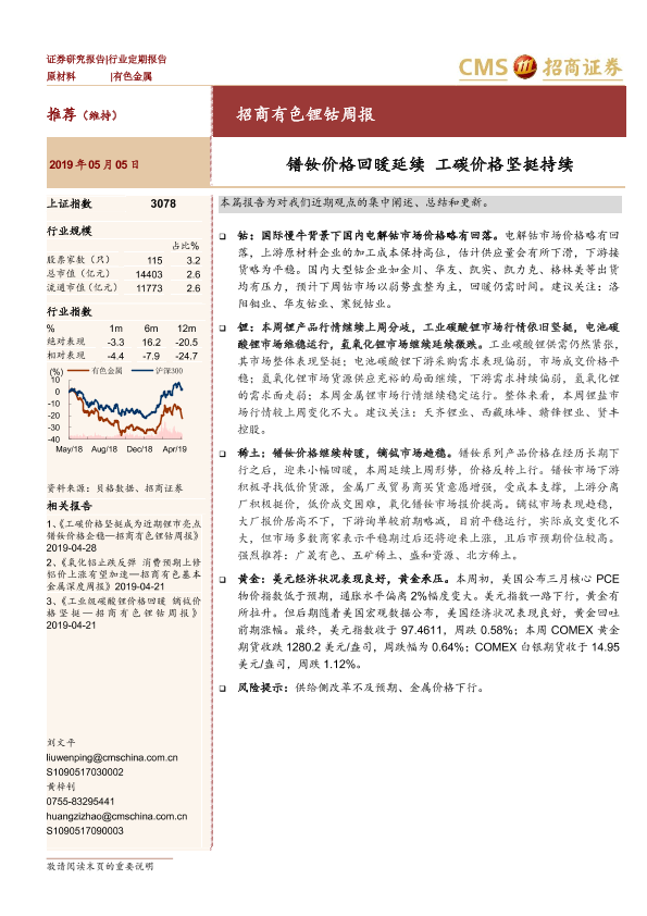 【海通证券】【20190505】招商有色锂钴周报:镨钕价格回暖延续 工碳价格坚挺持续-14页