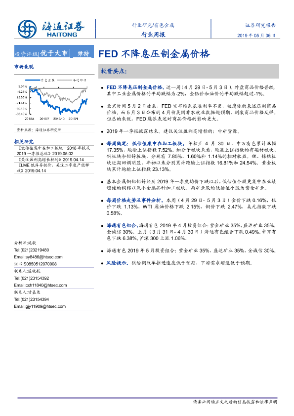 【海通证券】【20190506】20190506-海通证券-有色金属行业周报:FED不降息压制金属价格-9页