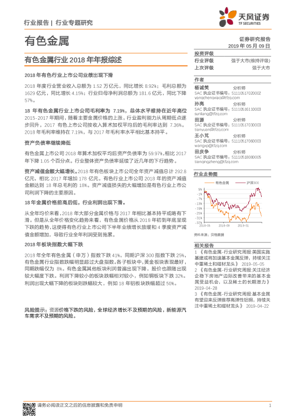 【天风证券】【20190509】有色金属行业2018年年报综述-7页