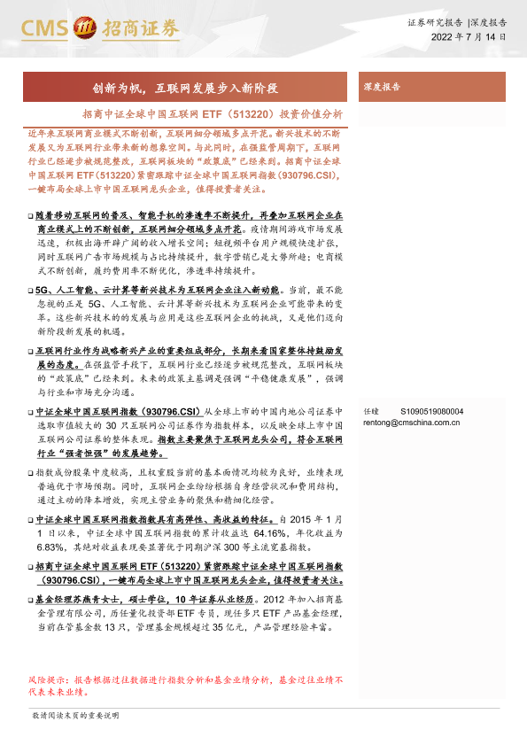 【海通证券】【20220714】招商中证全球中国互联网ETF(513220)投资价值分析:创新为帆,互联网发展步入新阶段-20页