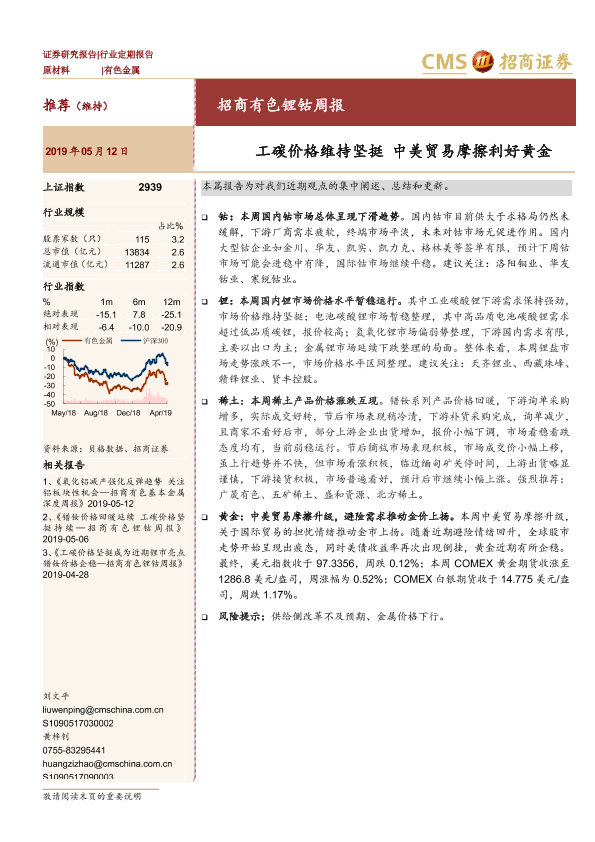 【海通证券】【20190512】招商有色锂钴周报:工碳价格维持坚挺 中美贸易摩擦利好黄金-14页