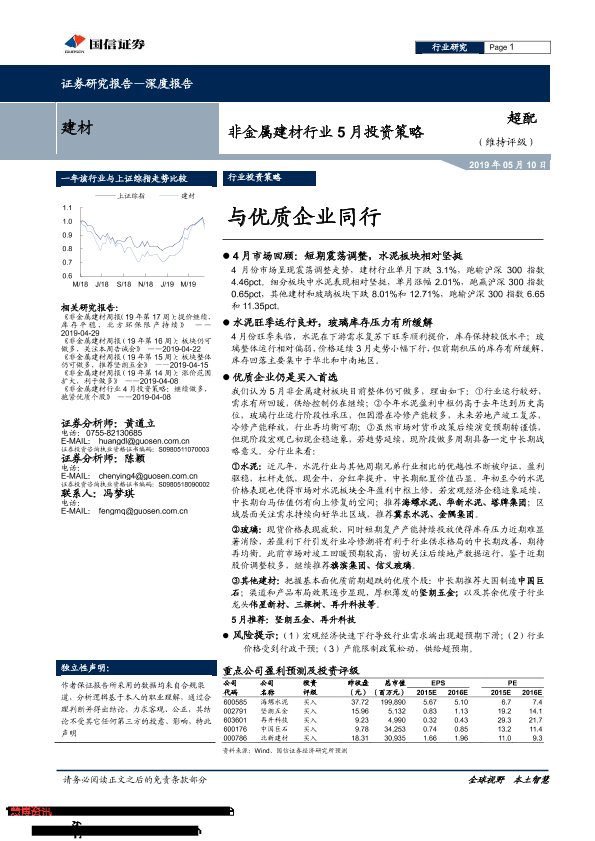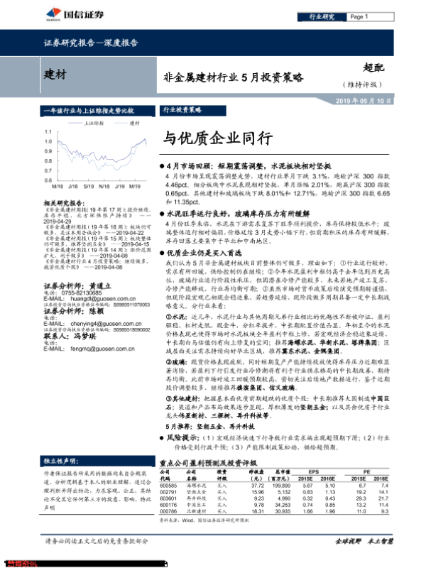 【国信证券】【20190510】非金属建材行业5月投资策略:与优质企业同行-22页