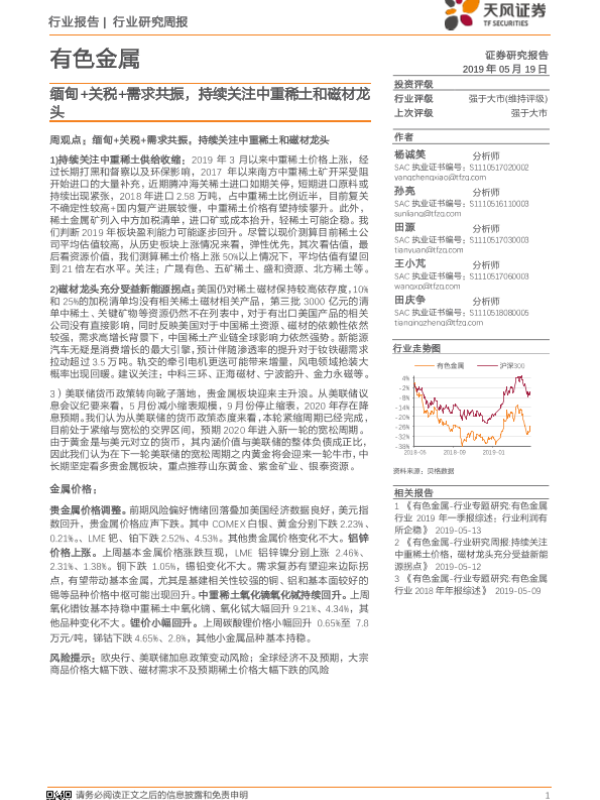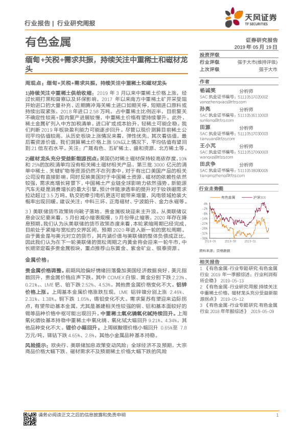 【天风证券】【20190519】20190519-天风证券-有色金属行业研究周报:缅甸+关税+需求共振,持续关注中重稀土和磁材龙头-13页