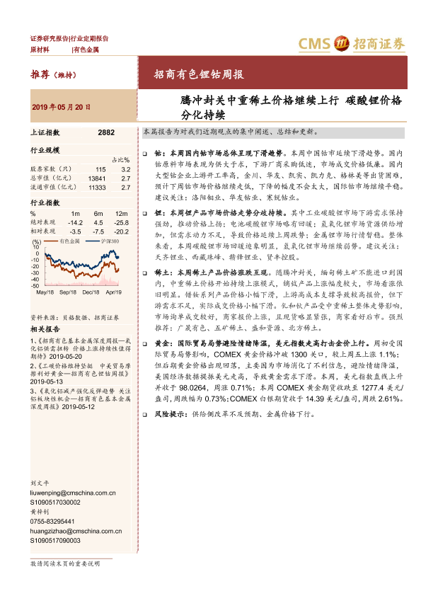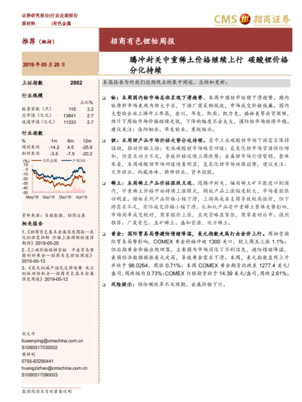 【海通证券】【20190520】有色锂钴周报:腾冲封关中重稀土价格继续上行,碳酸锂价格分化持续-14页