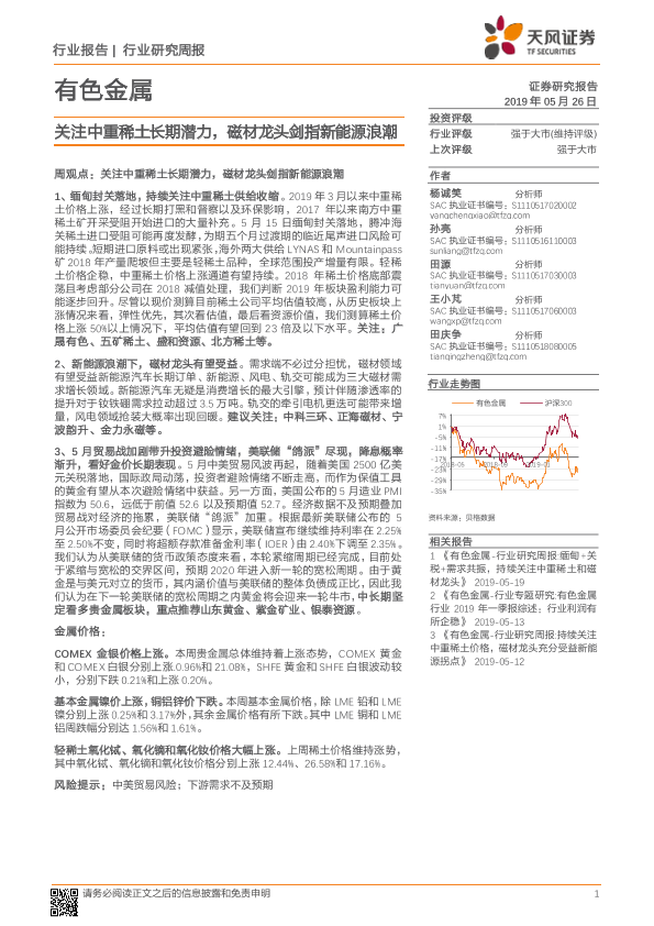 【天风证券】【20190526】20190526-天风证券-有色金属行业研究周报:关注中重稀土长期潜力,磁材龙头剑指新能源浪潮-16页