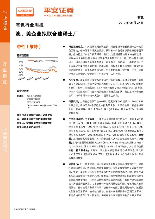 【平安证券】【20190527】有色行业周报:澳、美企业拟联合建稀土厂-5页