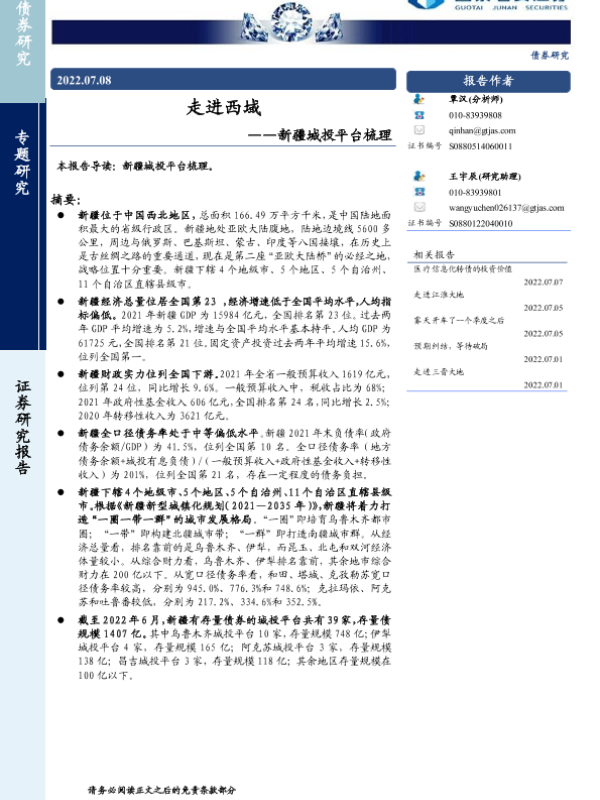 【国泰君安证券】【20220708】新疆城投平台梳理:走进西域-17页