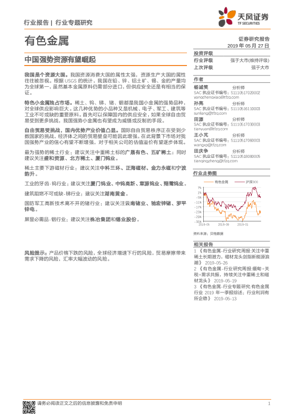 【天风证券】【20190527】20190527-天风证券-有色金属行业专题研究:中国强势资源有望崛起-20页