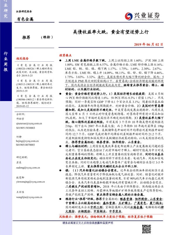 【兴业证券】【20190602】美债收益率大跌,黄金有望逆势上行-11页