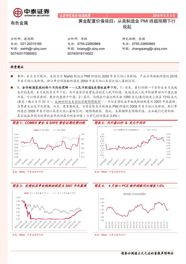 【中泰证券】【20190604】有色金属:黄金配置价值依旧,从美制造业PMI终超预期下行说起-5页