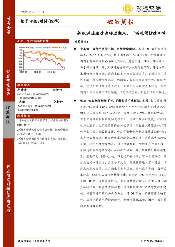 【财通证券】【20190603】20190603-财通证券-锂钴周报:新能源退坡过渡临近期末,下游观望情绪加重-13页