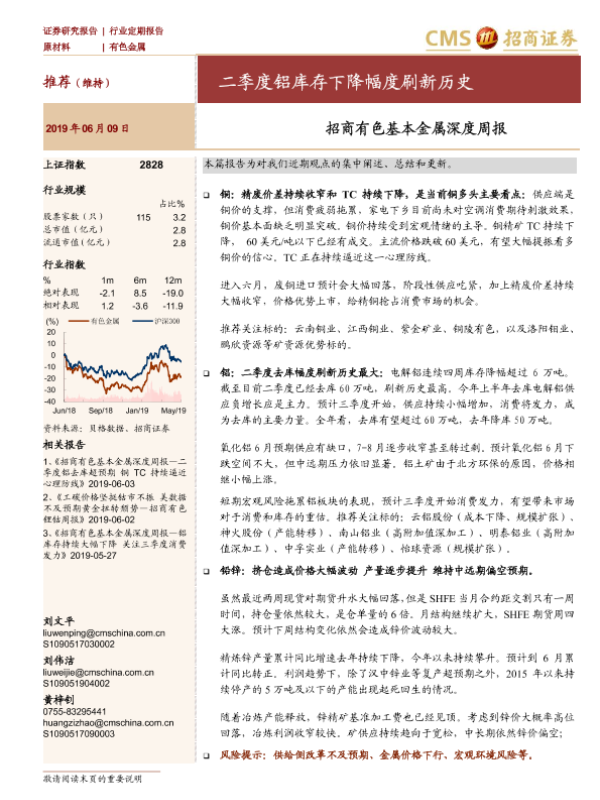 【海通证券】【20190609】20190609-招商证券-招商有色基本金属深度周报:二季度铝库存下降幅度刷新历史-24页