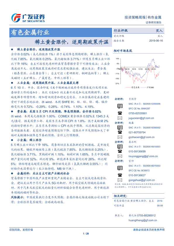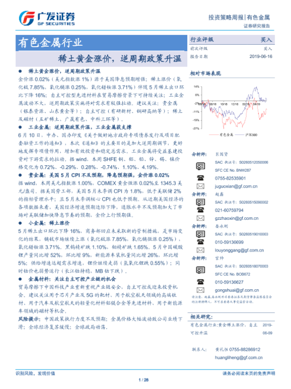 【广发证券】【20190616】有色金属行业:稀土黄金涨价,逆周期政策升温-28页