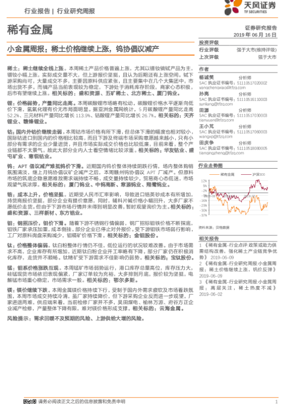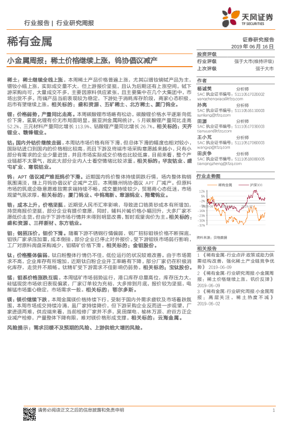 【天风证券】【20190616】20190616-天风证券-小金属周报:稀土价格继续上涨,钨协倡议减产-16页