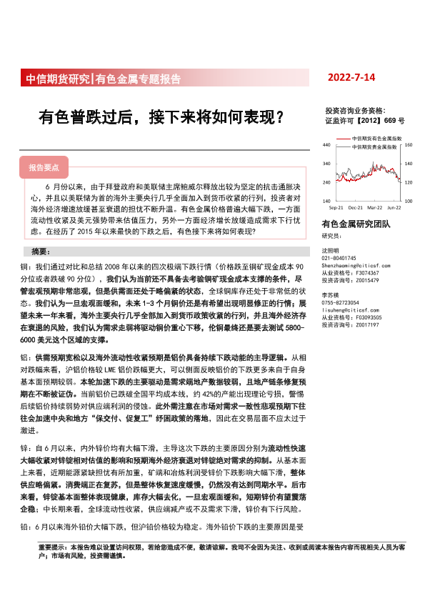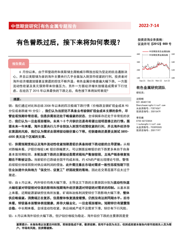 【中信期货】【20220714】有色金属专题报告:有色普跌过后,接下来将如何表现?-25页