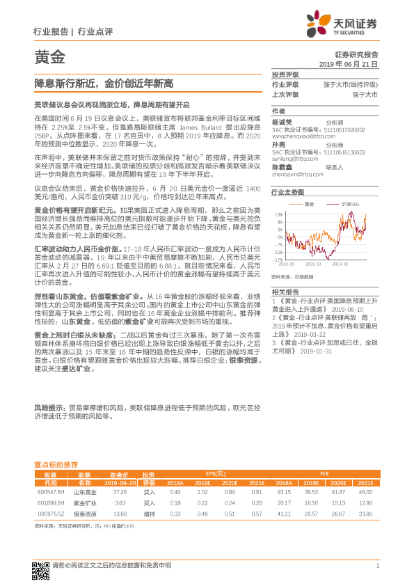 【天风证券】【20190621】黄金行业点评:降息渐行渐近,金价创近年新高-2页